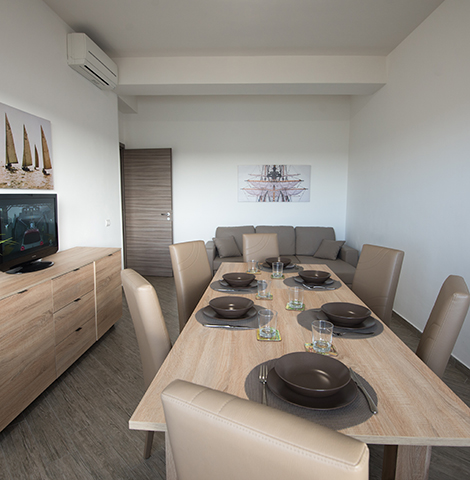 La casa è composta da ingresso, cucina dotata di ogni necessità (forno, frigorifero, piano cottura, tostapane, bollitore elettrico, macchinetta per il caffè, stoviglie), soggiorno con TV a schermo piatto e divano letto matrimoniale, due camere da letto con letto matrimoniale, una camera da letto con letto a castello, 2 bagni con doccia, dotati di asciugacapelli.